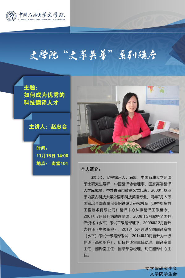 【学术讲座预告】如何成为优秀的科技翻译人才