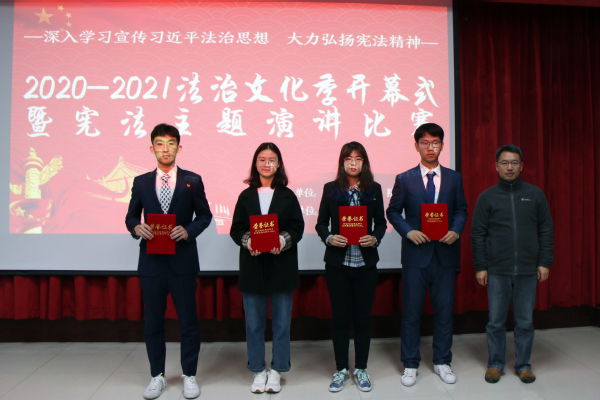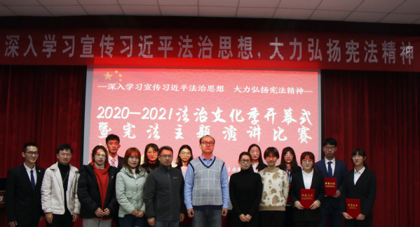 11月28日,为深入学习贯彻党的十九大精神和十九届五中全会精神,积极开展宪法教育,加强卓越人才培养,BET体育365投注官网举办了2020-2021法治文化季开幕式暨“深入学习宣传习近平法治思想,大力弘扬宪法精神”主题演讲比赛。BET体育365投注官网党委书记姚成郡,学院党委副书记陈熙、法学系副主任杨军、法学系副教授冷凌、团委书记赵振华、辅导员于露、张淑琪等与150余名学生参加。