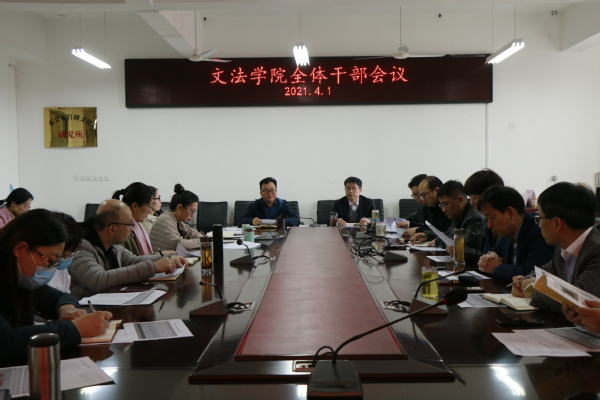 院长王学栋传达学校新学期工作会郝芳校长讲话、学校人事人才工作等会议精神,就学校对学院“十四五”规划有关工作任务安排情况进行说明,对学院学科建设等工作进行部署。王学栋强调,2021年是国家政治大年、“十四五”开局之年、学院发展关键之年,学院继续坚持“贡献导向、差异化发展、激励与考核”的发展思路,不断强化“学科学位点与专业、科研与教学、公转与自转”的相互统筹,实现各项工作“重点做深有突破、特色做精有优势、整体做强有影响”的深入推进,以学科专业建设为龙头,在学校人文社科振兴计划引领下,提升交叉学科博士点影响力,以“品”字型策略布局文、法、艺三大学科发展,精准发力,坚定信心,促进学院建设水平再上新台阶。