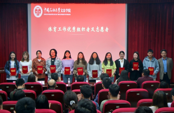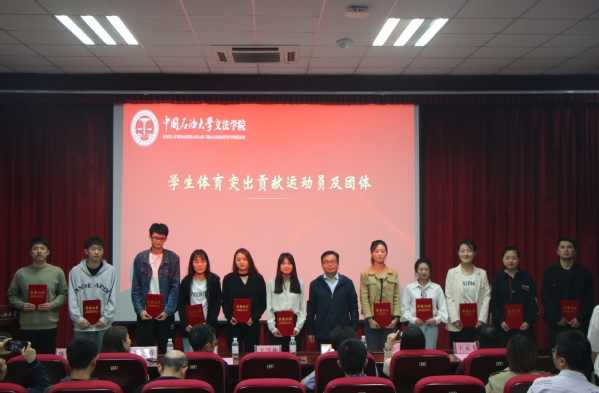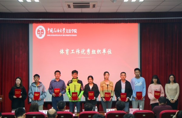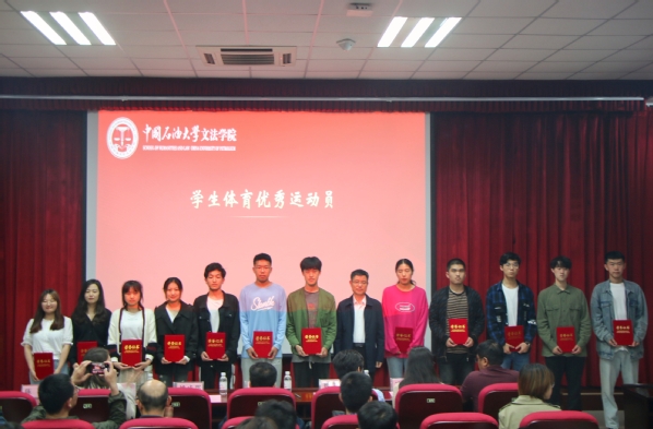 随后,学院为在体育工作中涌现出的优秀集体和先进个人颁发荣誉证书。颁奖典礼后,学生运动员代表黄沛悦发言,呼吁文法学子积极参与体育健身运动。