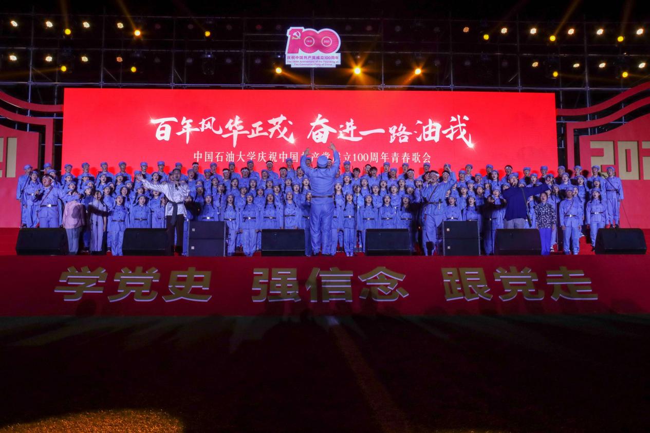 百年风华正茂,奋进一路“油”我!自2021年3月起,由BET体育365投注官网入党积极分子、党员及音乐系学生组成的合唱队就已开启了排练准备工作。历时近四月,合唱队成员反复练习,精益求精,致力于呈现最好的舞台效果,展现百年风华。
