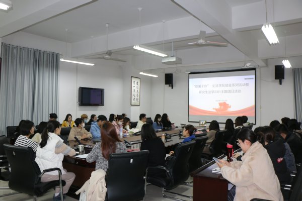 已考取济南市自然资源和规划局选调生的法学研2001班孟宇从研究生生活、就业方向、选调准备等方面结合自己的经验进行了介绍。他以身边同学不同的发展方向为例,提醒同学们要明确自己的就业方向并提前做好规划,以防到就业时身处被动;关于选调,他介绍了选调的种类和考试内容,并指出备考的内容很复杂,同学们要提前了解选调生的招聘条件和要求,并做好相应准备。