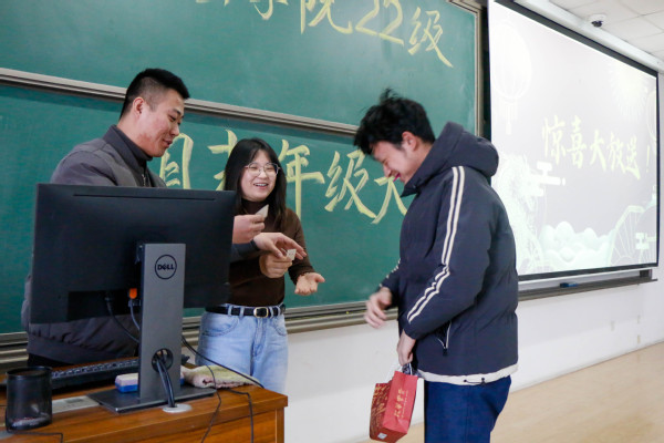 最后,杨倩与陈旺现场进行“惊喜大放送”,以随机抽号的形式为学生们送上精心准备的新年礼物,现场气氛热烈,温情脉脉。