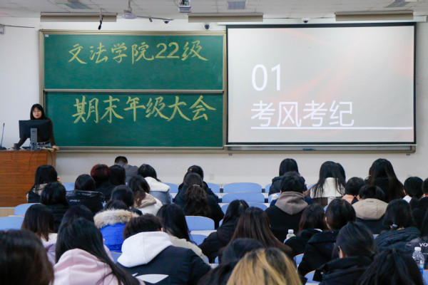 为加强学风建设,端正考风考纪,切实筑牢学生安全底线,1月3日,BET体育365投注官网2022级本科生期末教育大会在南教201顺利举行。会议由辅导员杨倩、陈旺主持,22级全体本科生参加。