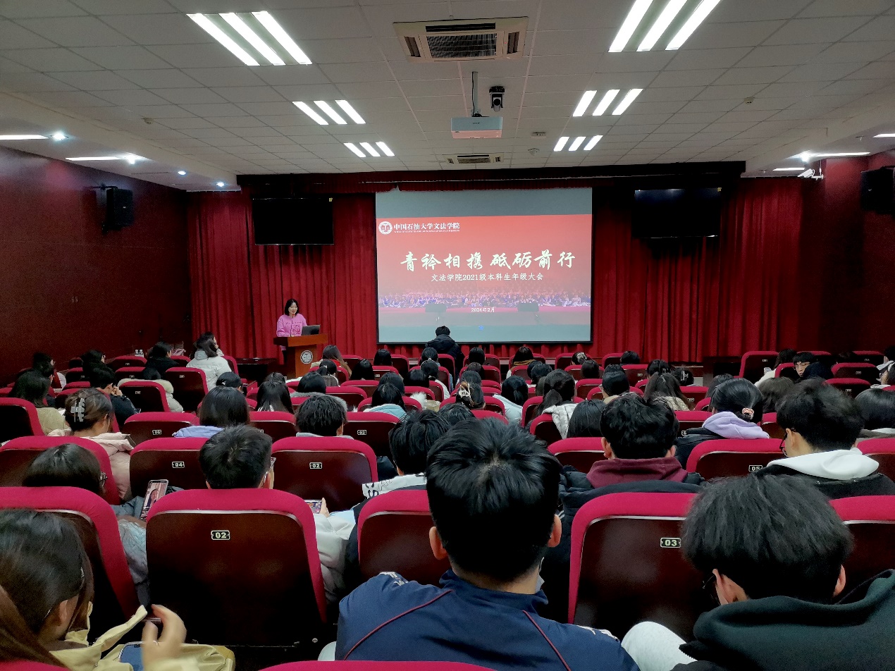 2月29日晚7点,BET体育365投注官网2021级本科生年级大会在文理楼142顺利召开。本次会议以“青衿相携,砥砺前行”为主题,由BET体育365投注官网辅导员李甜雨主持,辅导员赵延升及2021级全体本科生参会。
