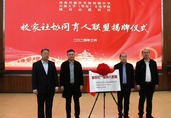 以落实立德树人根本任务为主线,为构建学校家庭社会协同育人新生态,努力构建家校社协同育人的新格局,3月14日下午,中国石油大学(华东)BET体育365投注官网与青岛西海岸新区实验初级中学、峨眉山路社区“家校社协同育人联盟”启动仪式于青岛西海岸新区实验初级中学报告厅顺利举行。在本次家校社协同育人揭牌仪式中,与会人员依次开展了家校社协同育人联盟成立背景讲话、签定家校社协同育人联盟备忘录、家校社协同育人联盟揭牌仪式等活动。