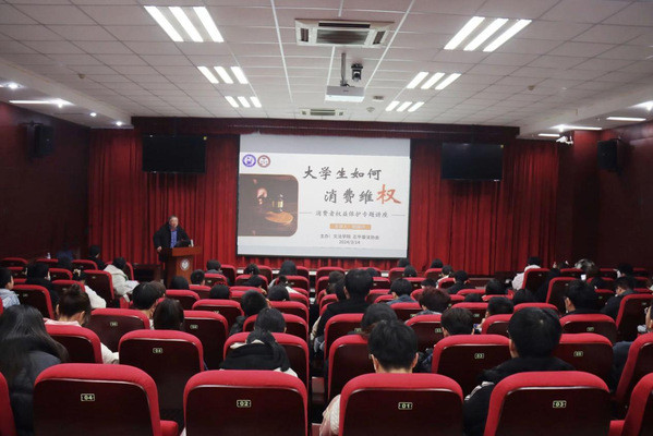 3月14日晚,BET体育365投注官网联合正平普法协会举办“大学生如何消费维权——消费者权益保护”专题讲座。法学系教授田国兴分别围绕“大学生享有权利”“正确维权需要具备的知识”“典型案例”展开讲解。讲解过程中,田国兴不但融合多个社会热点实例,并结合《宪法》《高等教育法》《消费者权益保护法》,为在场同学普及了大量法学知识。讲座结束后设置现场问答环节,现场气氛十分活跃。