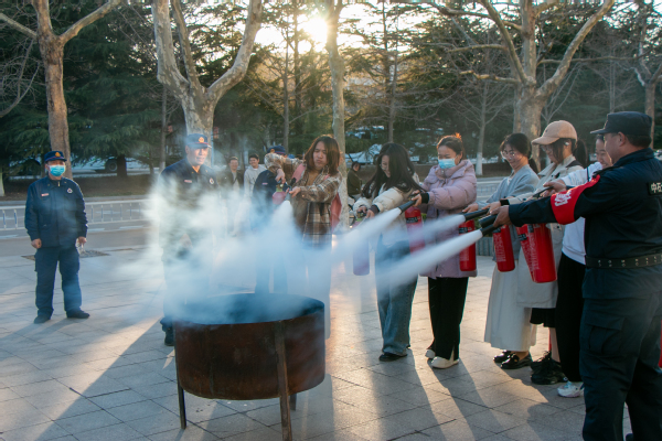 团校第十三讲主题为《增强消防意识,共建平安校园》,由保卫处消防科消防队长孟祥钰担任主讲人。孟祥钰将内容分为五个部分,分别从校园安全工作教育、校园火灾的薄弱点、火灾中人员的行为、校园火灾案例、校园火灾预防措施展开阐述。孟祥钰列举了几种常见校园安全问题,指出校园安全教育的重要性。此后,孟祥钰借助国家2021年全国校园火灾真实数据,结合起火原因统计柱状图,为学生总结了校园火灾的常见发生场所与发生原因。同时,为提高学生的消防意识,孟祥钰播放了部分校园火灾监控录像以及消防安全警示片。他强调,火灾中,意识是第一位的技能,学生应掌握火场自救法则,具备基本逃生技能。针对目前大学生广泛缺乏消防意识的现象,孟祥钰借助实物道具,为学生现场演示了灭火器、消防栓、逃生面具等消防器具的使用。讲座结束后设有实操演练环节,学生纷纷踊跃参与,利用课堂知识操作消防器具,现场气氛十分活跃。