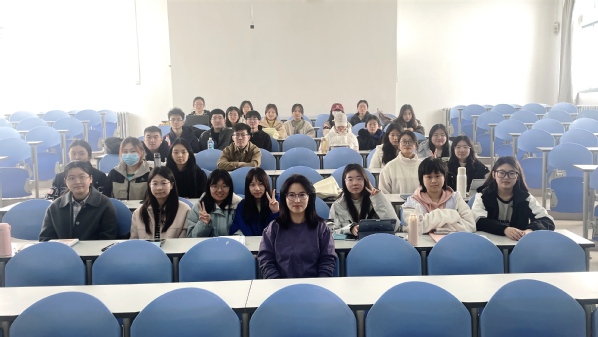 第二部分由班主任郝婷婷老师与学生们进行交流与指导。在了解到学生们纠结迷茫的现状后,郝老师表示理解,同时结合自身经历经验,向大家介绍了当下就业或升学的多个主流方向的情况,并提供历届专业毕业生的去向与发展情况作为参考。在师生问答环节中,解答了同学们对于考公考研与未来发展规划的疑问之后,郝老师表示:“大家在做好决定后一定要坚定,不要犹犹豫豫、左右摇摆,而是要朝着目标踏实向前,为之奋斗!”问答环节结束后,班级成员与郝老师合影留念,至此,本次就业升学主题班会圆满结束。