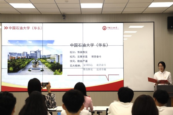 “我们是五月的花海,用青春拥抱时代。”伴随着与会成员的齐唱团歌声,此次团日活动拉开帷幕。与会成员共同观看两校宣传片《少年·少年》及《蓝色华章》,共赏校园风采。随后,张婧与杨倩分别致辞,回顾两校友好交往历史,并就学校概况、学院建设、团委工作等方面展开交流,分享发展经验,促进共同发展。法学2201团支部成员杨富媛与地质学2022级团支部成员李学申分别介绍赫崇本、李文波、王进喜等两校先辈榜样,引导支部成员汲取优秀先辈力量、继承发扬石油精神与海洋精神,更好地奋进新征程、建功新时代。