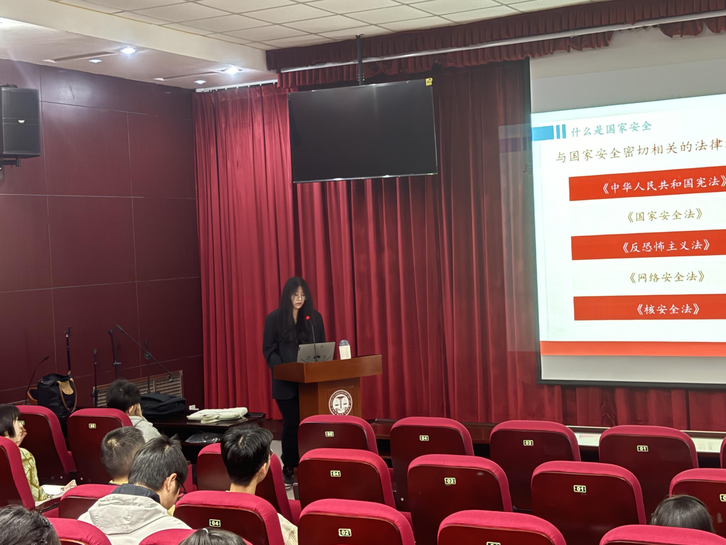 习近平总书记在党的二十大报告指出,国家安全是民族复兴的根基,社会稳定是国家强盛的前提。国家安全并非只是一个遥远而宏大的议题,它与我们每个人的日常生活息息相关。本次系列主题宣讲活动牢固树立青年学子的国家安全意识,增强“国家安全人人有责、人人可为”的责任意识,以实际行动维护国家的安宁与稳定,以青春之力助力构建国家安全钢铁长城。
