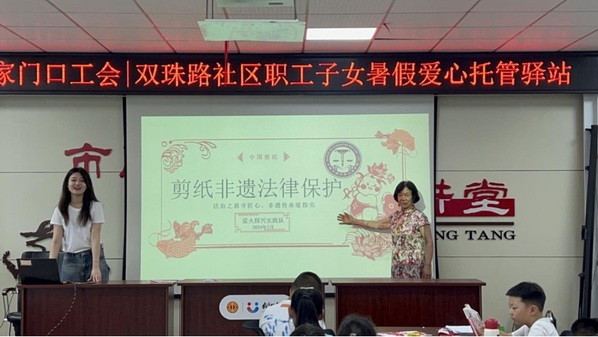 队员刘潇蔓进行剪纸非遗法律保护讲座 石承鑫摄