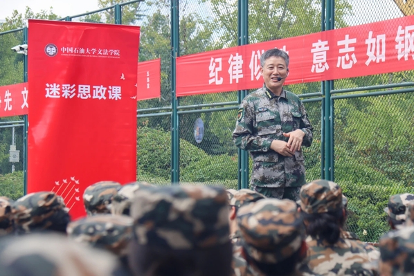 此次“迷彩思政课”以青年大学生为主体,通过描述当今世界格局,号召青年勇于担当时代大任,弘扬时代精神。既加强了学生思想政治教育,同时培养了学生的爱国主义精神和集体荣誉感,为2024级军训添上了浓墨重彩的一笔。