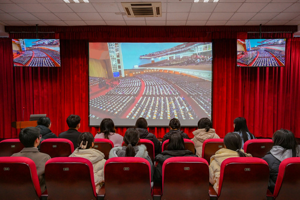 BET体育365投注官网学生会学生骨干观看两会 侯博文摄