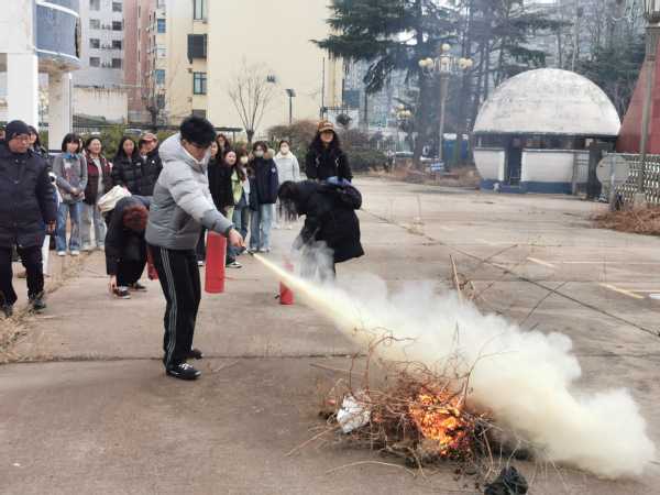 宣讲结束后,支部成员们与社区工作者们一同前往武夷山小区开展社区清洁工作,在清洁工作中,支部成员体会到劳动的乐趣,同时也思考着志愿服务的意义。随后,社区工作者们向学生们介绍了干粉灭火器的使用方法以及灭火方式,并让支部成员亲自体验如何灭火,使参与人员在此次团日活动中收获了宝贵的生命安全知识,增强了应对火灾等突发事件的能力。