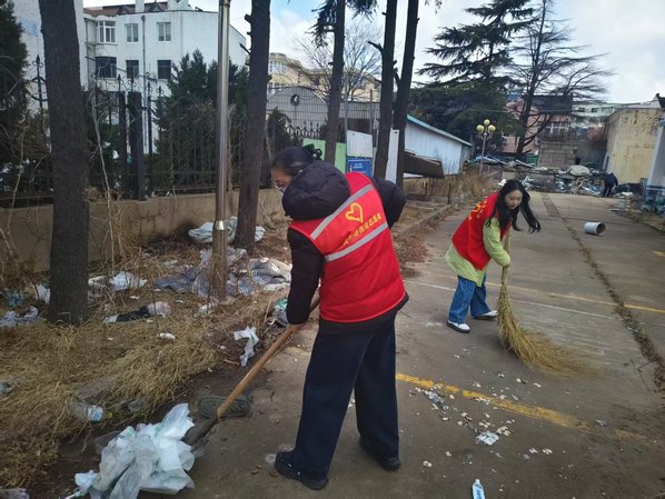 为了弘扬志愿服务精神,改善社区环境卫生,在居民座谈交流会之后,支部成员们拿起扫帚等卫生工具,深入社区,开始了清扫社区的志愿服务活动,大家分散在不同的角落,打扫灰尘、清理杂草,成员们都热情高涨。此次志愿服务活动不仅使社区环境得到改善,也拉近了团支部与居民之间的距离,支部成员们以实际行动诠释了“奉献、友爱、互助、进步“的志愿服务精神。