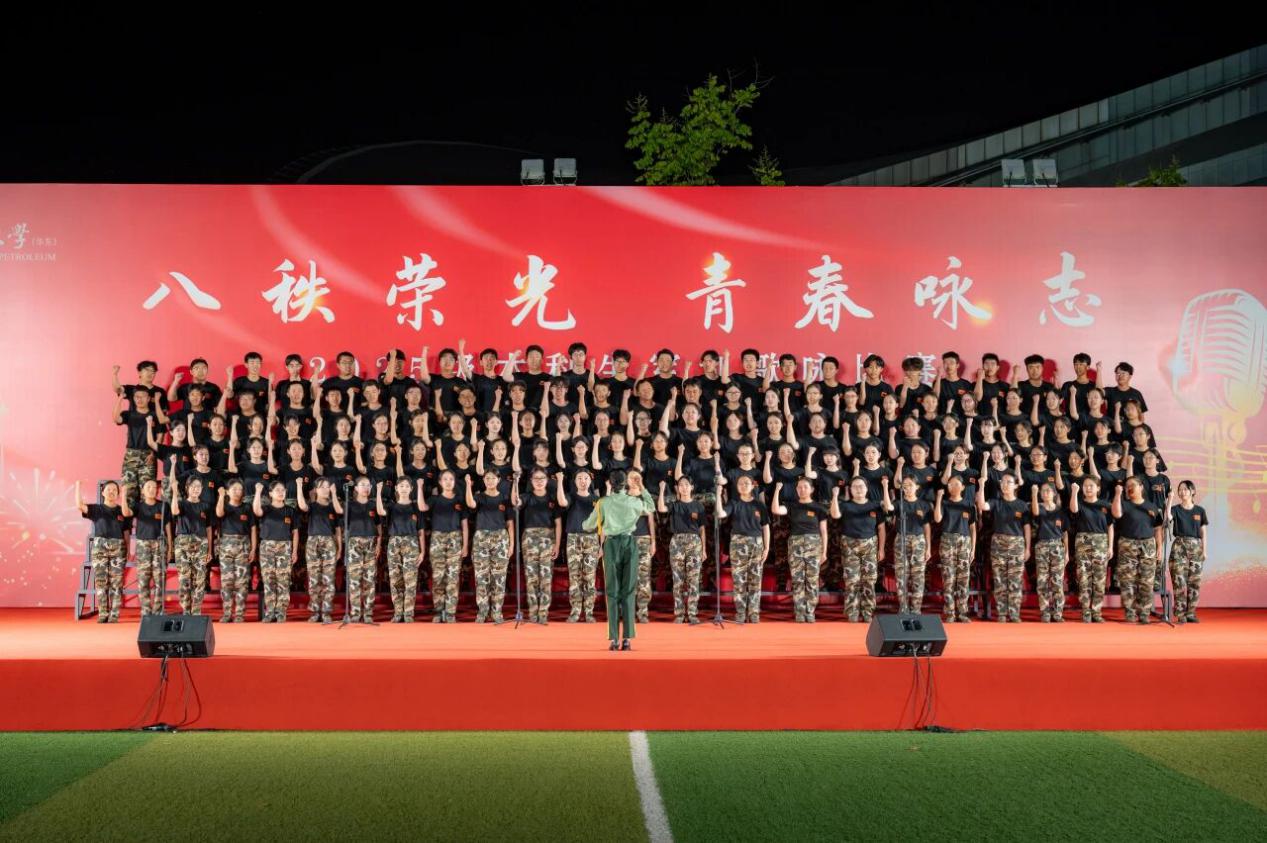 “东方升起了太阳,放射出万道霞光”经典旋律悠然响起。文法学子们庄重而深情的演唱,将学校深厚的历史积淀与青春理想融为一体。歌声既有对峥嵘岁月中奋斗精神的致敬,也传递出新一代学子继承传统、开创未来的坚定信念。
