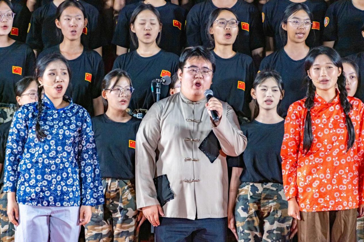 每一份荣耀背后,都是汗水与努力的积淀,更凝聚着文法大家庭的优良传统。训练期间,新生们克服军训的疲惫,利用宝贵的休息时间投入排练。没有人抱怨,没有人退缩,每个人都以最饱满的热情参与其中。同时,学院党委副书记陈熙多次亲临指导,辅导员赵延升、王浩然,兼职辅导员贺小凡、刘佳怡陪同训练,给予新生们温暖的关怀与鼓励。音乐系2023级和2024级学生张滢荟、王逸凡、王俞文、邢书磊、张路祺等人则全程提供专业指导,将声乐技巧与舞台经验倾囊相授,为演出质量提供了有力的保障。