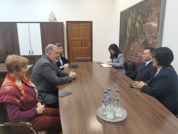 9月24日下午,代表团访问白俄罗斯国立大学孔子学院,外方院长托济克·阿纳托利·阿法纳西耶维奇教授、中方院长刘素玲副教授、于莉雅主任出席会谈,双方就国际中文教育硕士实习实践、中文师资培养、科研协同创新等议题交流了意见,为今后的进一步合作奠定了基础。
