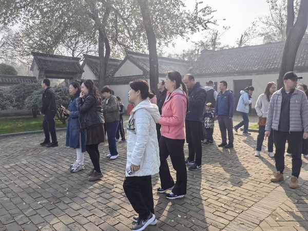 在历史印记中筑牢初心。大家先后参观了省政府旧址纪念馆、厉家寨红色教育基地。教职工们通过讲解介绍,以及参观展厅内图文资料、影像视频、实物模型,感受到山东省政府在艰难岁月中建立、发展、壮大的历程,以及为山东革命和建设事业作出的重要贡献,同时也系统学习了厉家寨从过去 “穷山恶水” 到如今 “绿水青山” 的变迁史,深入感悟老一辈建设者 “一把镢头闹革命,万亩梯田绘新图” 的奋斗精神。参观结束后,全体教职工在展厅广场前合影留念,将红色精神深深镌刻在心中。