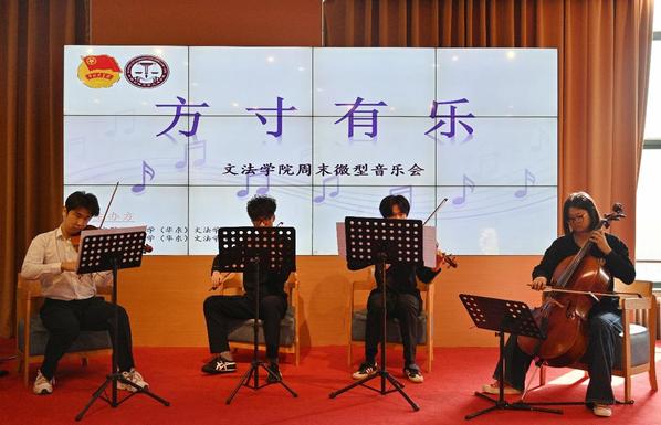 音乐2502班四位同学带来弦乐小夜曲合奏 陈奕诺摄